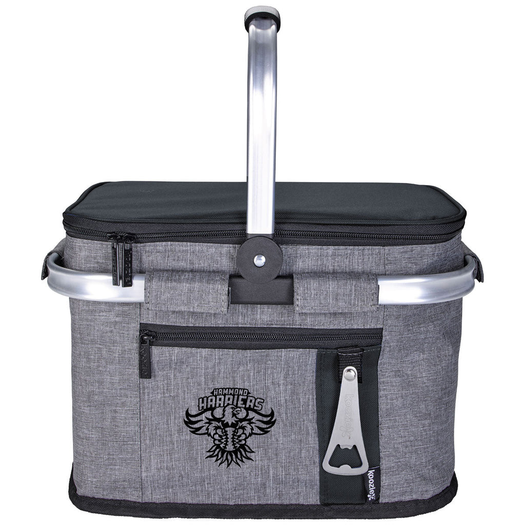 A cool, contemporary design makes the 48-Hour Koozie Black Collapsible Picnic Basket an excellent way to show off your company's custom logo. Featuring awesome extras like double zippers and a built- in bottle opener, this branded item will make an excellent employee appreciation gift or event giveaway item.