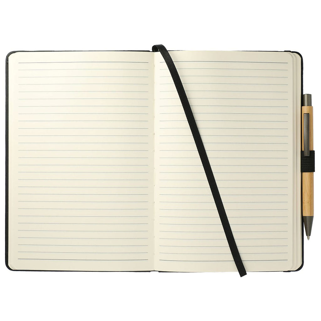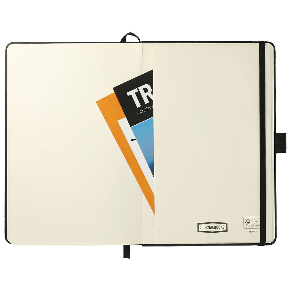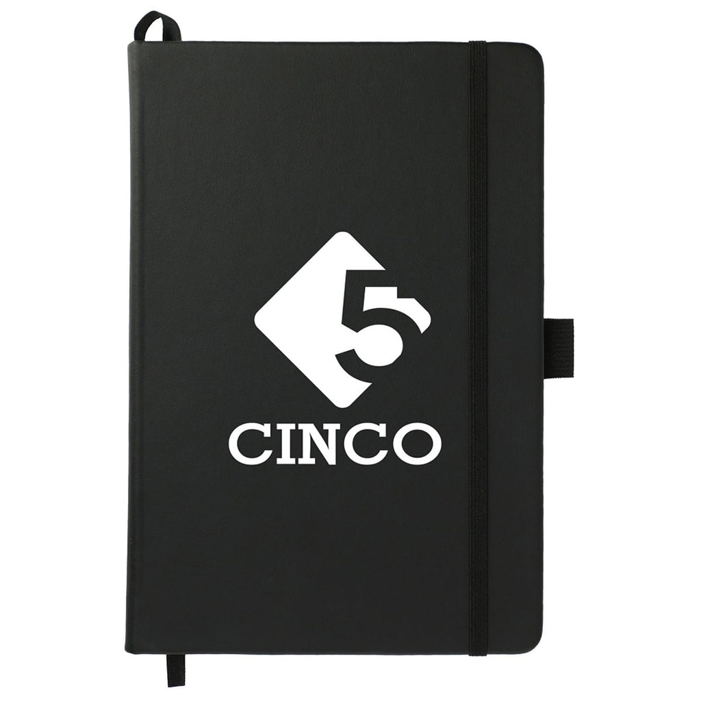 The JournalBooks Black Cactus Leather Bound is perfect for all of your notetaking needs. Features a uniquely crafted cover made of 20% of cactus components and 80% bio polyurethane. It includes a color-matching elastic closure, pen loop, and ribbon page marker. Order a sustainably sourced and luxurious feeling notebook for the office. Available with custom-printed artwork.