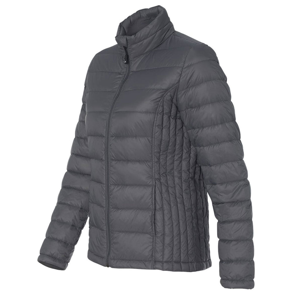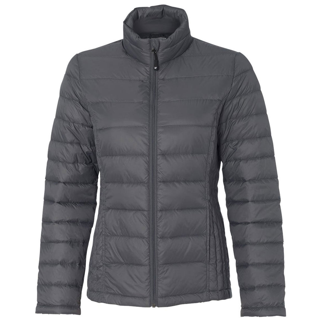 The company logo Weatherproof Women's Dark Pewter 32 Degrees Packable Down Jacket combines comfortable warmth and extraordinary style in one. Features you'll find with the women's packable down jacket include 100% 380T high-density nylon, 90% duck down/10% feather filling, 550 fill power, front pockets and interior pockets, water-resistant capabilities, wind-resistant attributes, and a pouch for packing away when traveling. When you add an embroidery corporate logo to the jacket, you have a lovely finished product which is great for advertising your company name and can be handed out to employees as corporate apparel gifts.Corresponding Men's Style: Weatherproof Men's Dark Pewter 32 Degrees Packable Down Jacket