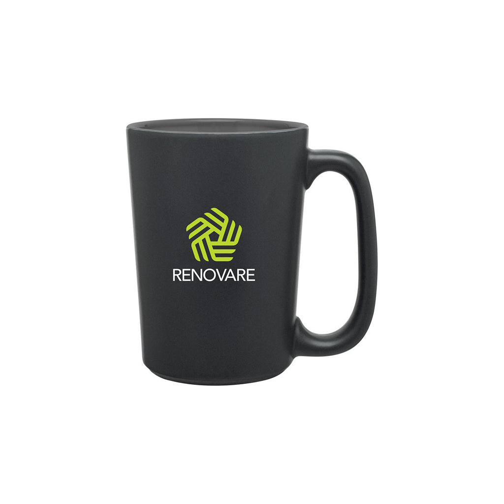 Enjoy your favorite beverage in this ETS Rocca Black/Glossy Storm Grey Ceramic Mug 12 oz. It flaunts a matte black exterior and glossy contrast interior. This stoneware will make a perfect promotional mug for an imprint of a bright, striking logo or brand message as the sign will stand out against the dark backdrop.