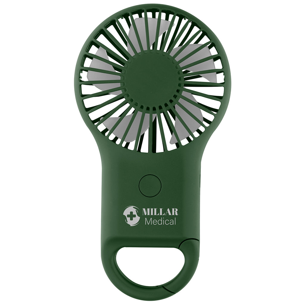 Hit Dark Green Rechargeable Handheld Fan With CarabinerThe minimum order for this product is 25 pieces.