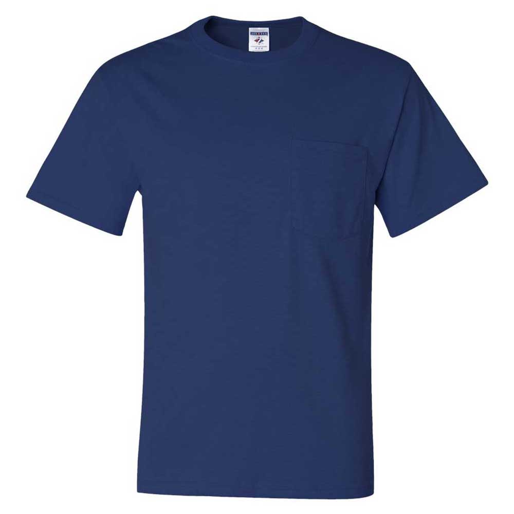 Create a screen print of your design for the Jerzees Men's Royal Dri-Power 50/50 T-Shirt with a Pocket. A wonderful basic tee with a pocket, the cotton polyester blend is lightweight and offers advanced moisture management performance that is great when working or playing outdoors. The soft fabric is a great canvas for your screen print. Use as employee apparel for part of a uniform or just add to the wardrobe of family and friends with a custom gift. A versatile piece that can easily go from home to work as part of layers and back again.Highlights