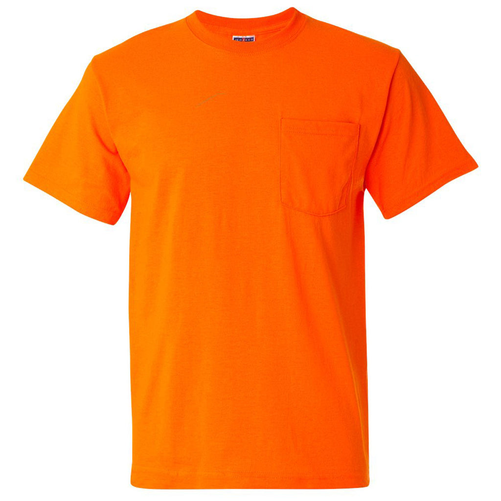 Jerzees Men's Safety Orange Dri-Power 50/50 T-Shirt with a Pocket