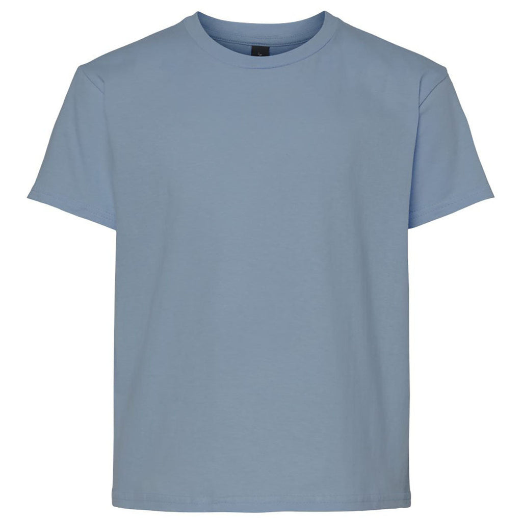 The Gildan Youth Stone Blue Light Cotton T-Shirt is a soft, comfortable option ideal for custom or corporate printing. Made from breathable cotton, it works well for school events, sports teams, and youth programs. Its smooth surface enhances print clarity, and the affordable price point makes bulk purchases easy. A dependable everyday tee for active kids.Highlights