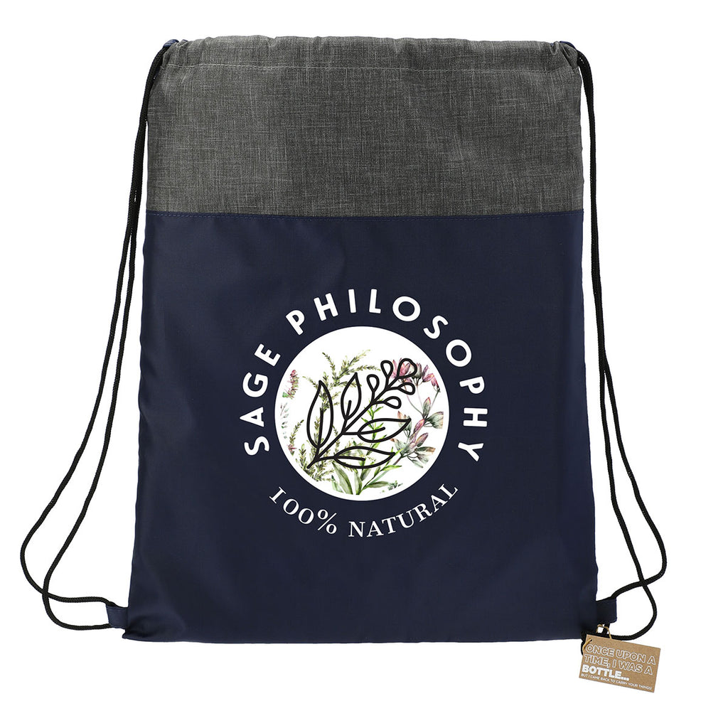 You'd never guess just by looking at it, but the Leed's Navy Ash Recycled Drawstring Bag is actually made from recycled water bottles. Perfect for eco-friendly brands who want to make their company's custom logo stand out in a crowd, adding your personalization to this awesome item will create a promotional item that is great for event giveaways, trade shows and more.