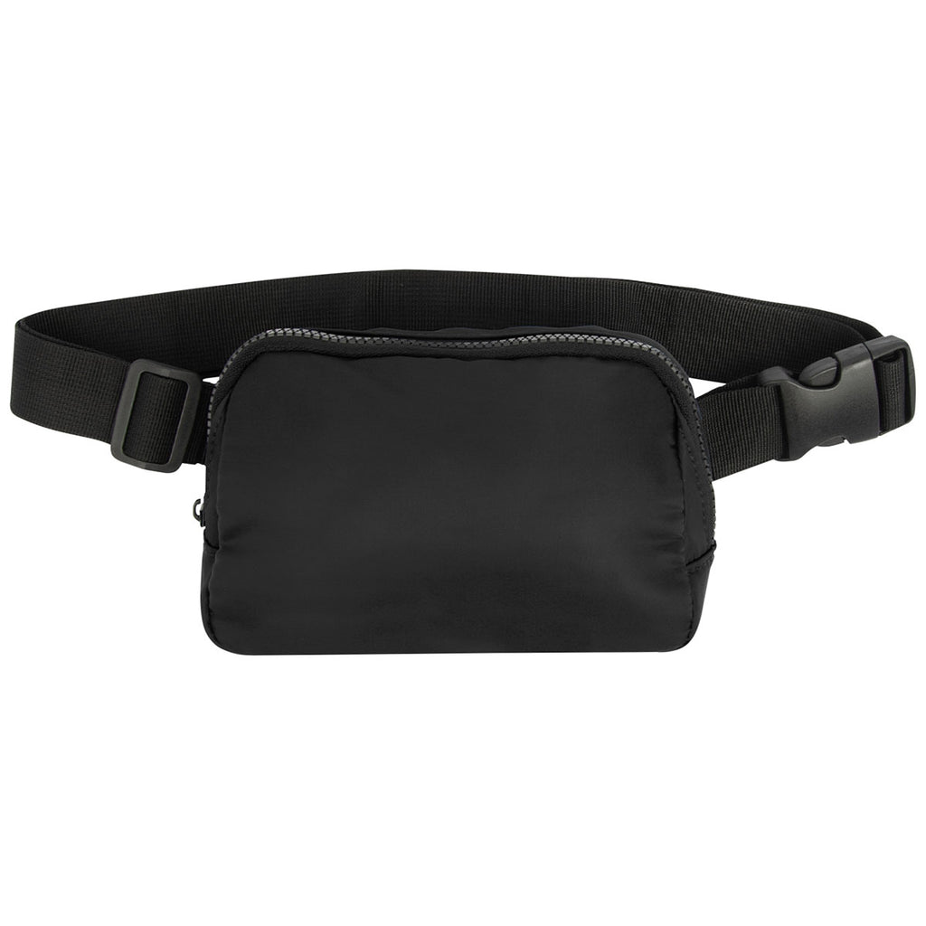 Add your custom design to the Hit Black Anywhere Belt Bag for a convenient option to carrying necessary items on the go. The Anywhere Belt Bag can be worn as a fanny pack or as a chest sling and has a zippered main compartment as well as a back zippered pocket. Available in several colors, this is a great item when traveling, working out, or hiking.