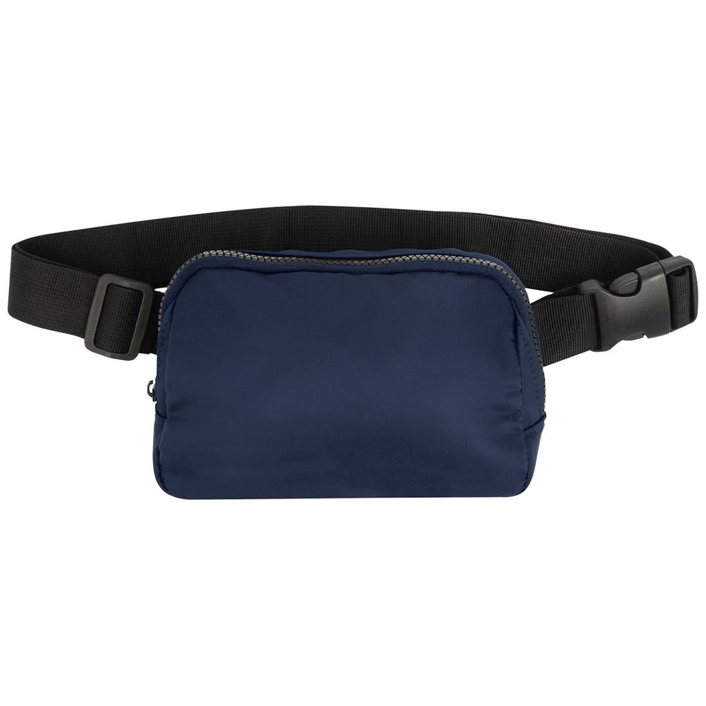 Add your custom design to the Hit Navy Anywhere Belt Bag for a convenient option to carrying necessary items on the go. The Anywhere Belt Bag can be worn as a fanny pack or as a chest sling and has a zippered main compartment as well as a back zippered pocket. Available in several colors, this is a great item when traveling, working out, or hiking.