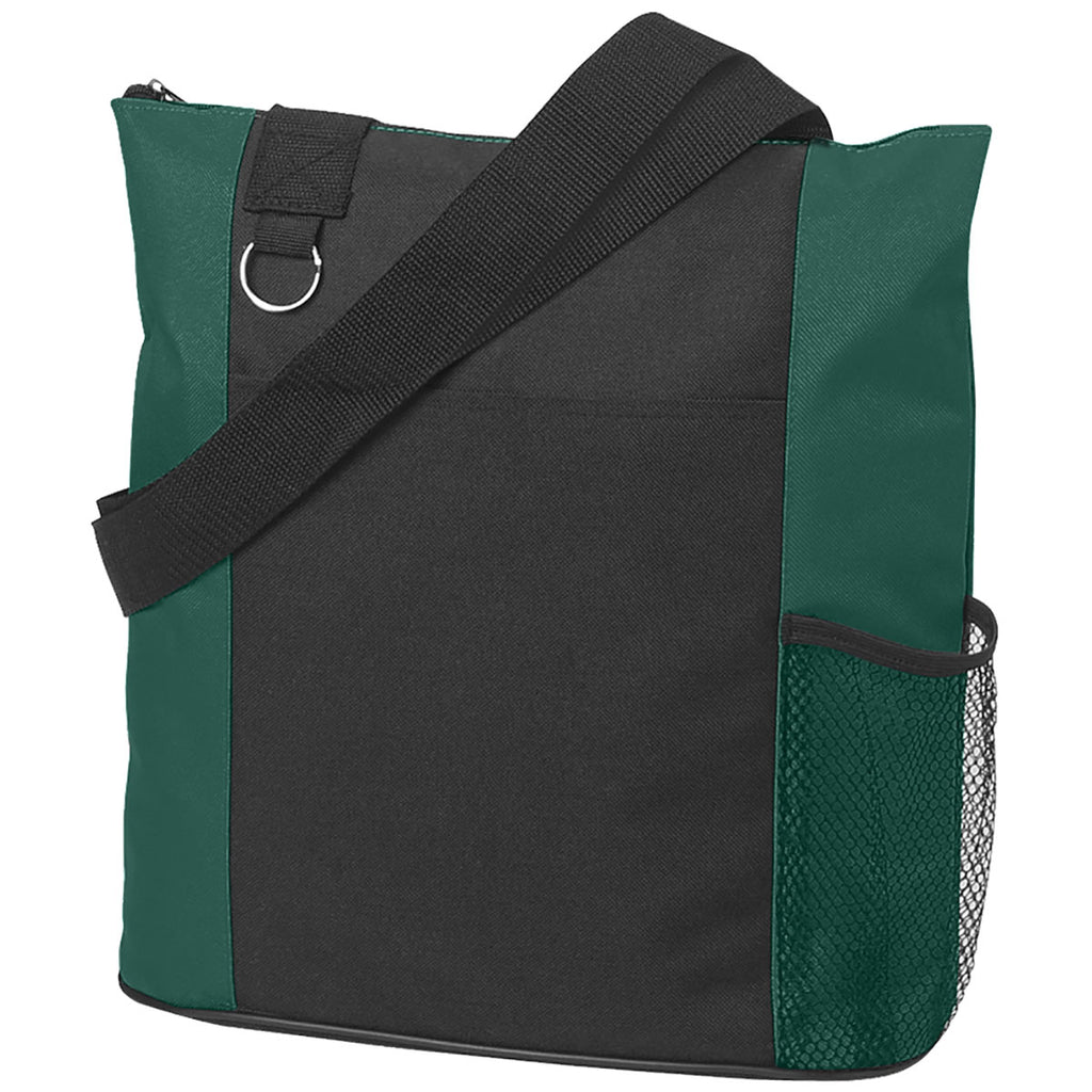 Get organized with the Hit Forest Green with Black Fun Tote Bag and your choice of custom screen print. Available in a wide range of colors, this tote has a black shoulder handle and a black center panel with colorful sides. The side mesh pocket is great for a water bottle or keys. Provide these for teachers, nurses, travel, or the morning commute.