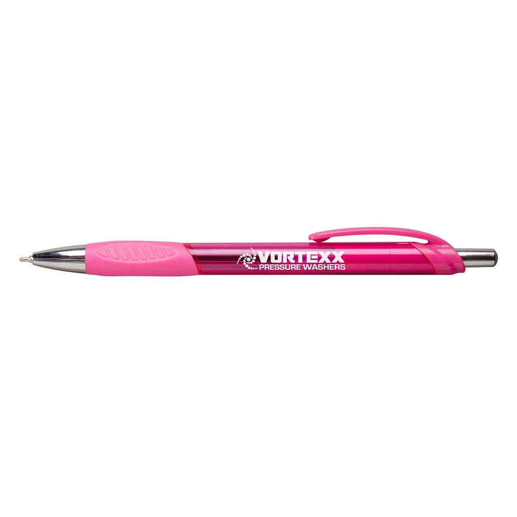Push a button to eject or retract a Hub Pens Pink Macaw Pen tip that consistently delivers ink on all types of writing surfaces. Ballpoint quality writing keeps you on top of taking notes during business seminars and conferences. Market your company by giving the pen away on customer and employee appreciation days. All you have to do is add your corporate logo to spread the word about your company in the community. Screen printing makes it easy for potential customers to recognize your brand. The raised rubber grip prevents finger and hand pain that results from frequent use of the pen.
