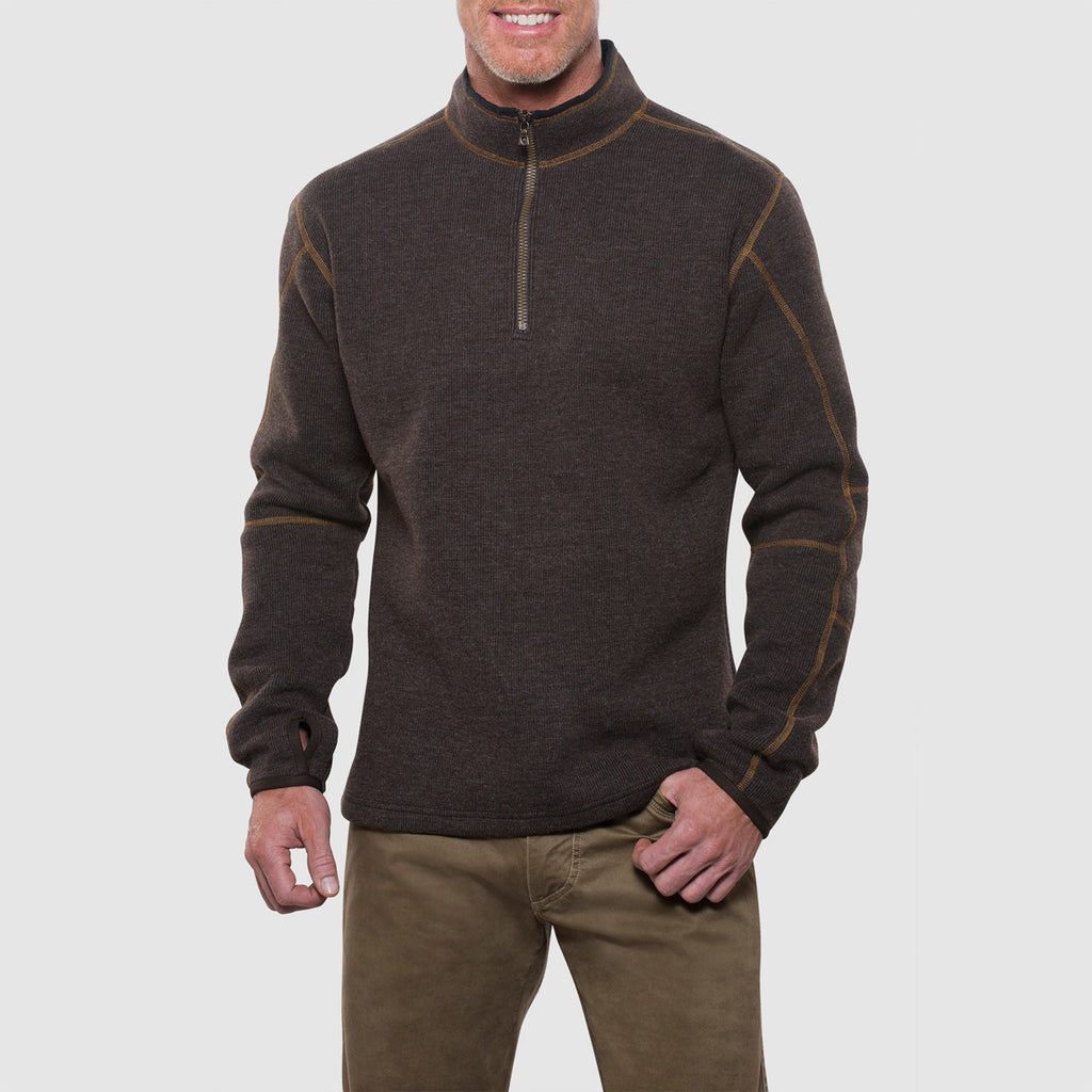You do not have to be a super hero to enjoy the high end fashion offered by the company logoed KUHL Men's Espresso Thor Quarter Zip. Taking a cue from the Marvel superhero, the rugged quarter zip jacket resists rips and tears to give you several years of outdoor recreational use. Polyester, wool, and nylon fabric endures the rigors of strenuous home improvement projects. Use the left sleeve stash pocket to store nails and screws. Articulated five-panel sleeves increase movement flexibility, which makes the quarter zip perfect for avid golfers. Swiss designed Riri zippers move flawlessly up and down the jacket. Attach a custom logo on the large imprint area to generate buzz for your company.Highlights