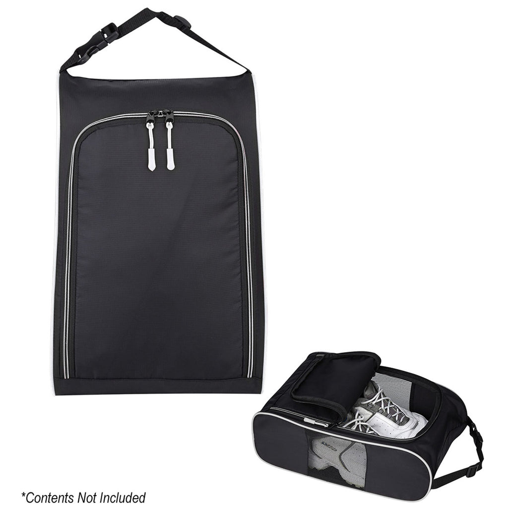 Hit Black/White Crosstown Side-Mesh Shoe Bag with your corporate logo is the safe, clean, and easy way to keep your shoes at hand and away from clean clothes. Whether traveling across the world or across town, this zip-open bag with mesh side panels will keep your shoes separate from other items. Choose from several zipper liner and pull color options.