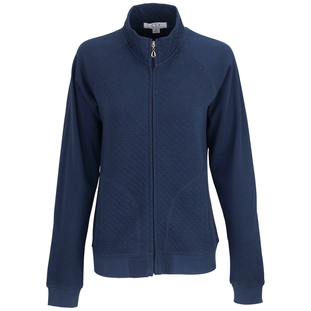 Warm diamond-weave fabric makes the Vantage Women's True Navy Mesa Jacket a must-have for colder climates. This full-zip layering piece is an excellent way to make sure your company's custom logo or design is highly visible at outdoor industry events. The sleek, sophisticated silhouette will also make your team feel extra confident while on the clock.