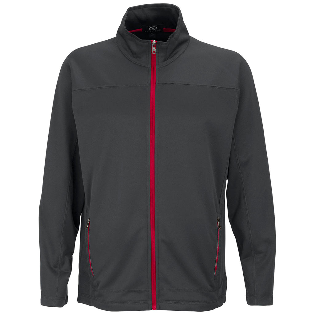 Vantage Men's Dark Grey/Sport Red Brushed Back Micro-Fleece Full-Zip Jacket