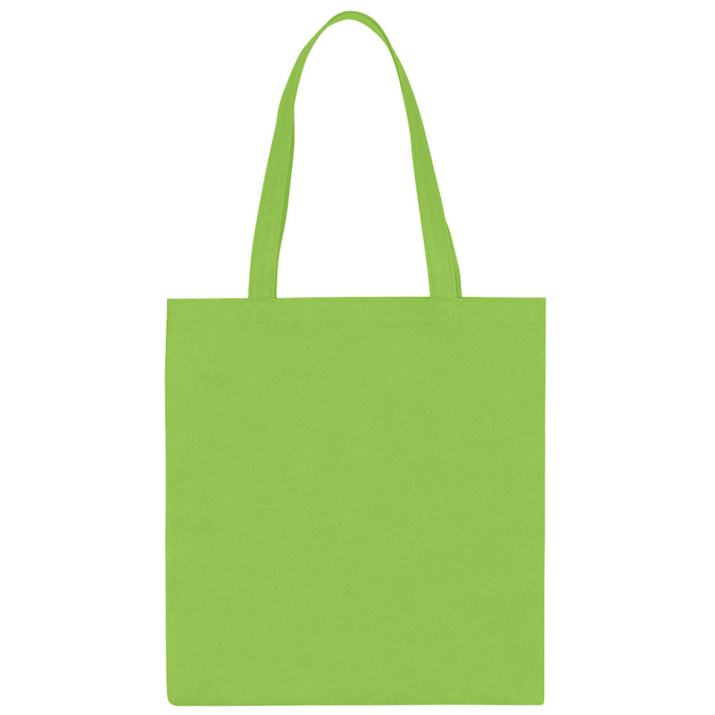 Try a corporate logo on the Hit Lime Green Non-Woven Economy Tote Bag to make carrying items a breeze for your customers and yourself. These thin, foldable totes are great for trade shows and networking events as they easily hold multiple brochures and business cards. Available in a variety of bold colors, your logo will pop.