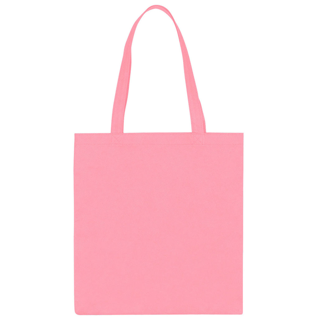 Try a corporate logo on the Hit Pink Non-Woven Economy Tote Bag to make carrying items a breeze for your customers and yourself. These thin, foldable totes are great for trade shows and networking events as they easily hold multiple brochures and business cards. Available in a variety of bold colors, your logo will pop.