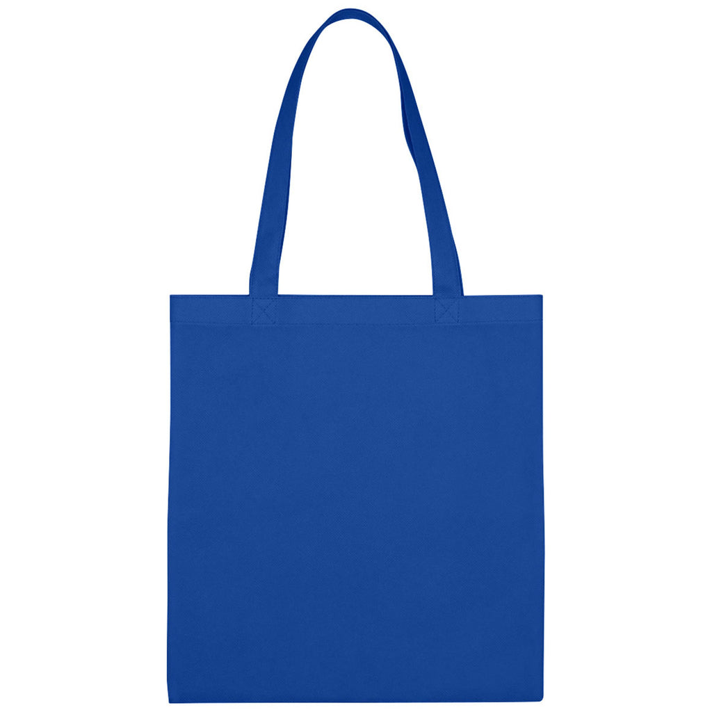 Try a corporate logo on the Hit Royal Blue Non-Woven Economy Tote Bag to make carrying items a breeze for your customers and yourself. These thin, foldable totes are great for trade shows and networking events as they easily hold multiple brochures and business cards. Available in a variety of bold colors, your logo will pop.