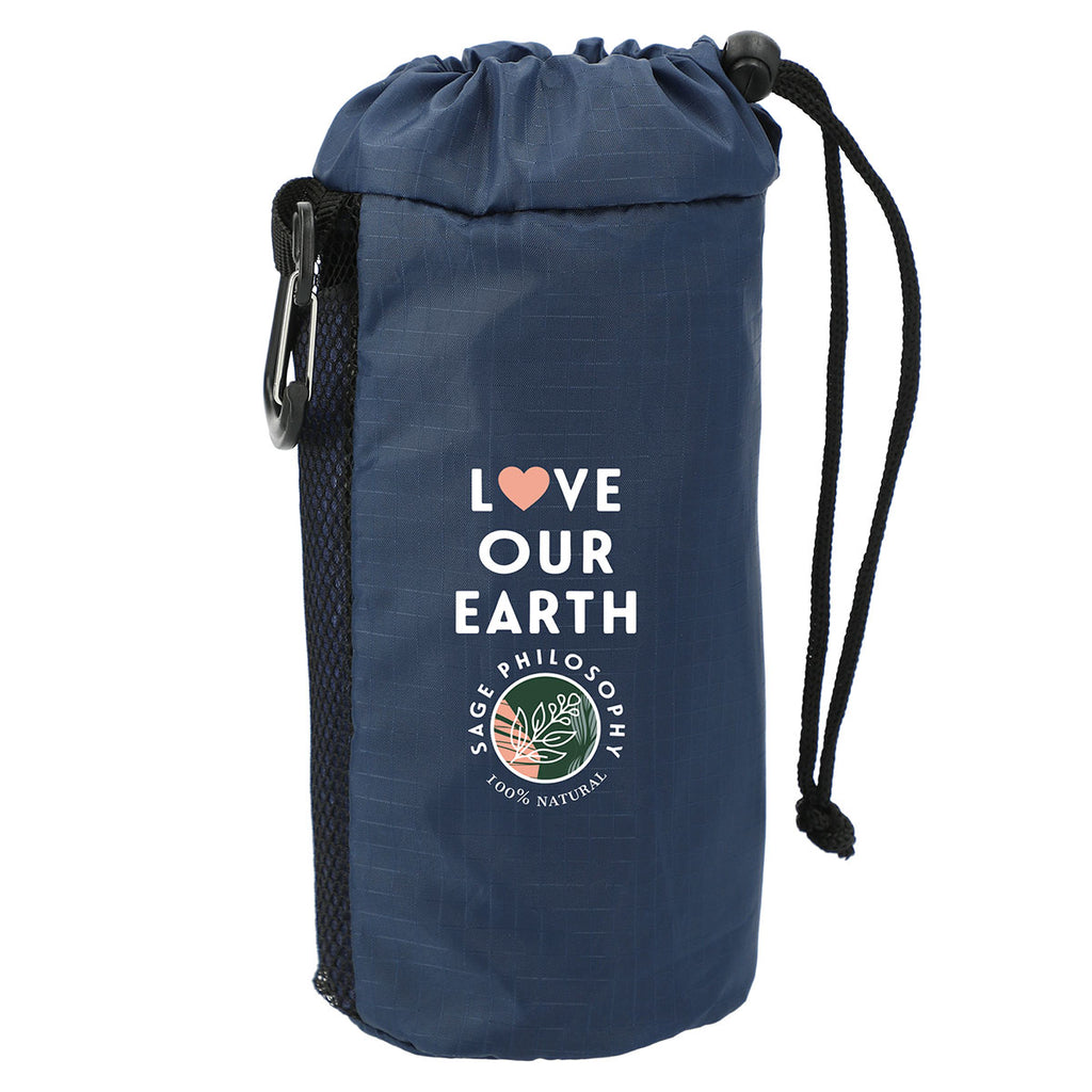 It's easy to remember your reusable grocery bags when the Leed's Navy Ash Recycled PET 3-Pack Shopper Totes is on the scene. This unique accessory features three reusable totes measuring 13"H x 12.5"W x 4.5"D, all stored inside of a cinched carrying case that is ready to put your company's custom logo on display.The minimum order for this product is 50 piece.