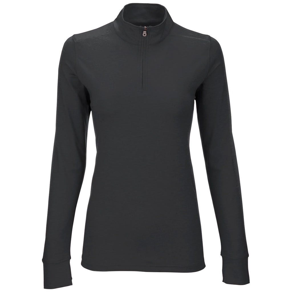 With forward shoulders in addition to front and back princess seams, the logoed Vansport Women's Dark Grey Zen Pullover defines the elegant appearance you need to get noticed at company sponsored golf tournaments. Moisture management technology makes the pullover perfect to wear when Mother Nature kicks up the humidity. The mostly polyester outerwear material resists rips and tears making it the perfect go to golf pullover for years to come. A little bit of spandex increases your arm movement flexibility to allow you more flexibility while teeing off. Attach a custom logo on the large imprint area and watch awareness of your company reach a new level.