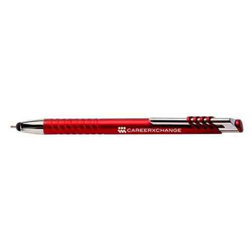 Durable metal protects the ink cartridge from damage caused by frequent drops from office desks and tables. The metal construction of the Hub Pens Red Nitrous Stylus pen also generates a sleek appearance that will turn heads at corporate events. Take advantage of the head turning by attaching your corporate logo to the large upper barrel. The ideal promotional gift contains a brushed satin finish and silver accents that create an executive appearance for the pen. Use the soft stylus to write messages on electronic devices such as an iPad or mobile tablet, without having to worry about scratching the sensitive touchscreen surface.