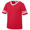 The stylish custom Augusta Sportswear Men's Graphite/Black/White Sleeve Stripe Jersey will look even better with your corporate logo affixed to it. Available in 33 unique colors, the men's jersey includes features such as a 50/50 polyester/cotton jersey knit, contrast color v-neck collar, contrast color sleeve stripes, double-needle hem sleeves and bottom, and other enticing attributes. Add a screen print company logo to the front of this jersey and you have a wonderful way to advertise your company name. This jersey shirt will make a great employee apparel gift or a lovely giveaway item at upcoming golf events or recruiting events.Highlights