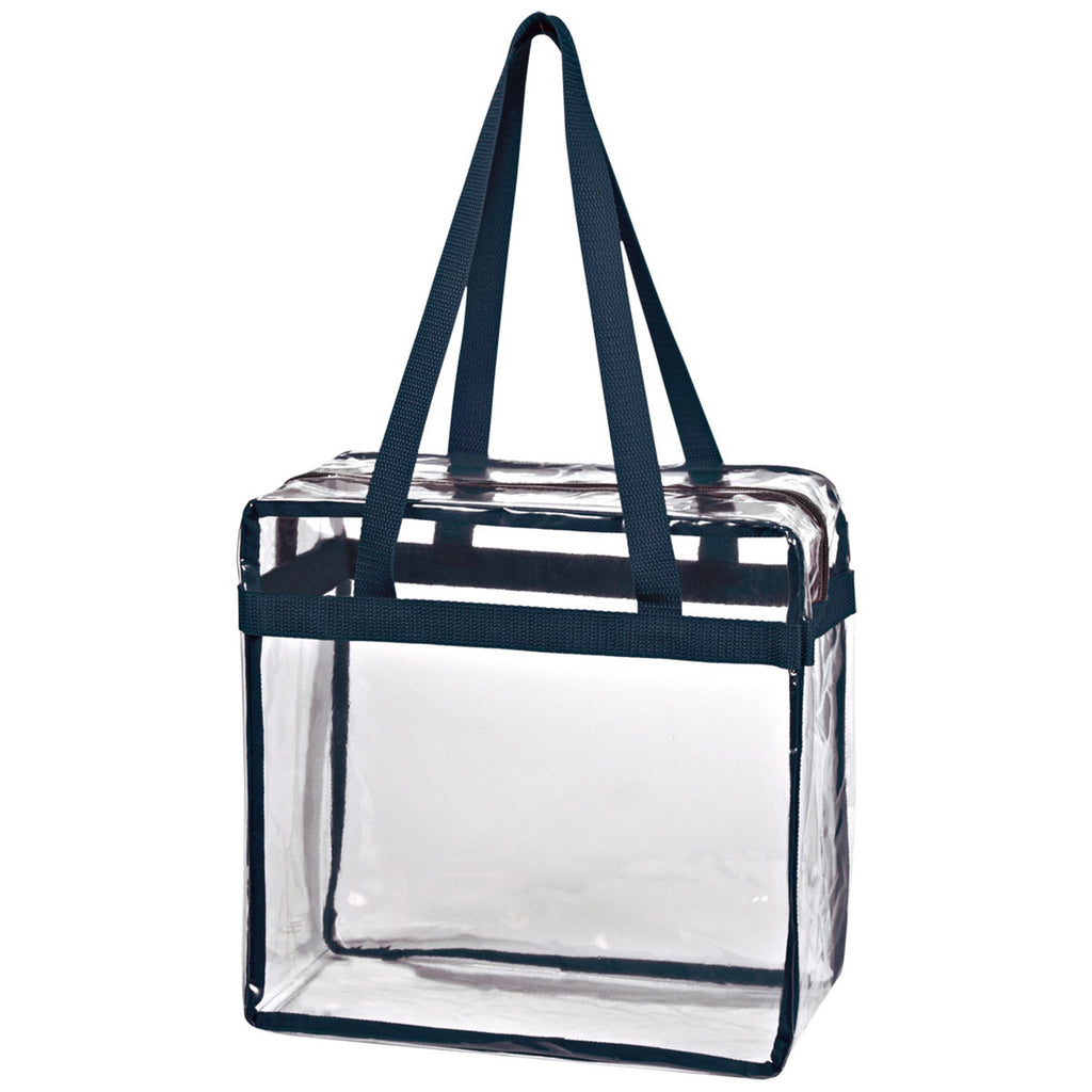 Hit Clear with Navy Trim Clear Tote Bag with Zipper