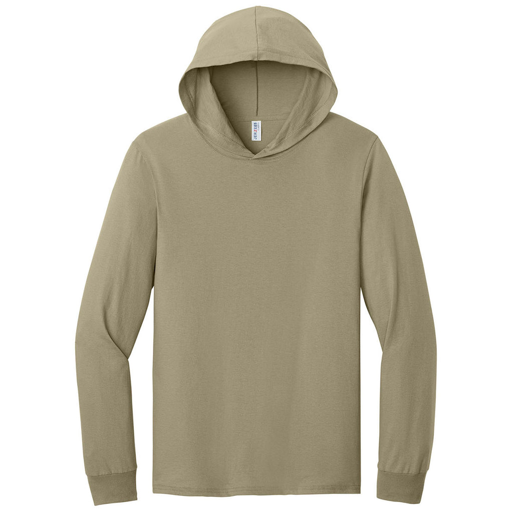 Jerzees Classics Unisex Khaki Cotton Long Sleeve Hooded T-Shirt