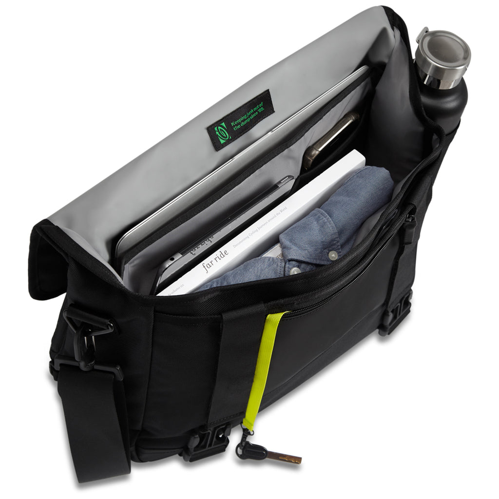 Get a hold of the custom Timbuk2 Eco Black Commute 2.0 Messenger Bag and keep your laptop and other daily essentials organized and ready for quick access. Perfect for your employees on the go. Personalize the bag with your custom logo and you'll be able to create a fantastic employee gift or event giveaway.Highlights