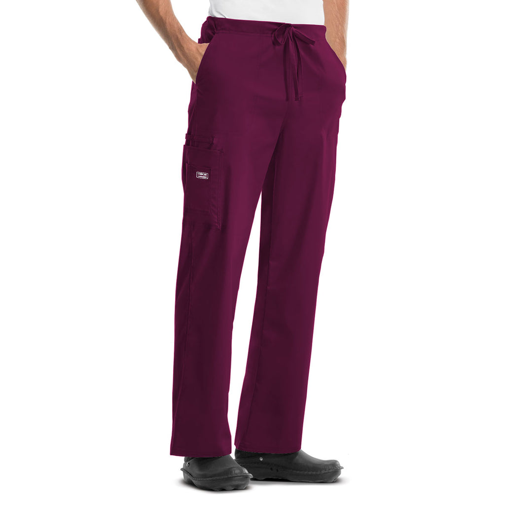 Add your corporate logo on the Cherokee Men's Wine Workwear Premium Core Stretch Drawstring Cargo Pant to draw attention to the positive reputation you have earned by working at a world class healthcare facility. Spandex twill improves mobility and highly durable polyester resists the damage caused by small rips and large tears. Adjust the drawstring to find the ideal fit around your waist. The unisex cargo pant includes a natural rise that enhances the visual appeal of the garment. Five storage pockets allow you to organize everything you need to make the rounds during 12-hour shifts. Use the instrument loop to gain quick access to important medical tools.Highlights