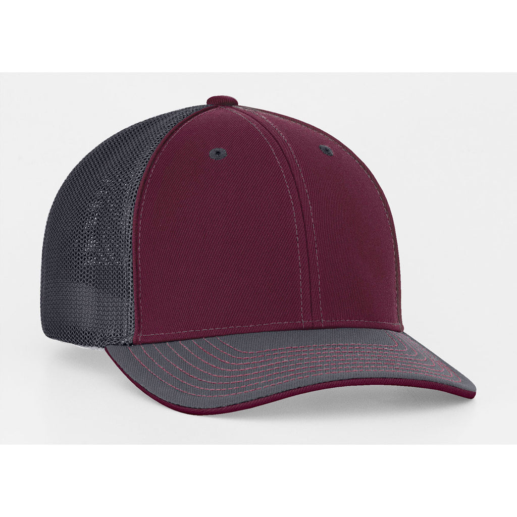 Pacific Headwear Maroon/Graphite Universal Fitted Trucker Mesh Cap