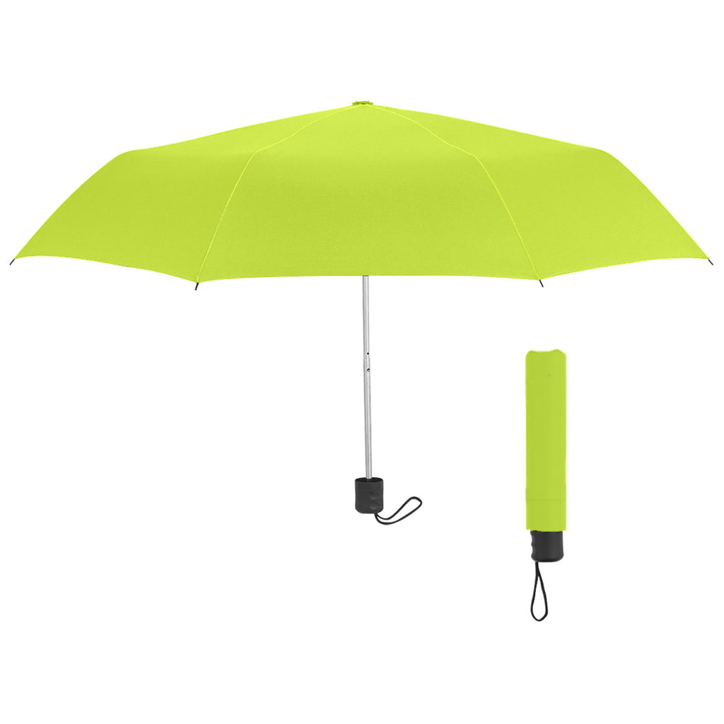 Stay dry with a custom Hit Lime Green 42" Arc Budget Telescopic Umbrella. This colorful, large umbrella is a must-have at sporting events, golf games, or just when the weather turns unexpectedly. Though the umbrella is large, when placed in its convenient carrying bag, it is only 9 inches long and easy to store in a console or purse.