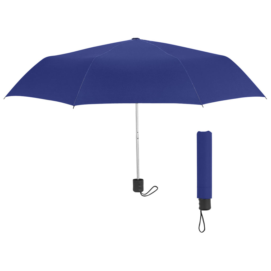 Stay dry with a custom Hit Navy 42" Arc Budget Telescopic Umbrella. This colorful, large umbrella is a must-have at sporting events, golf games, or just when the weather turns unexpectedly. Though the umbrella is large, when placed in its convenient carrying bag, it is only 9 inches long and easy to store in a console or purse.