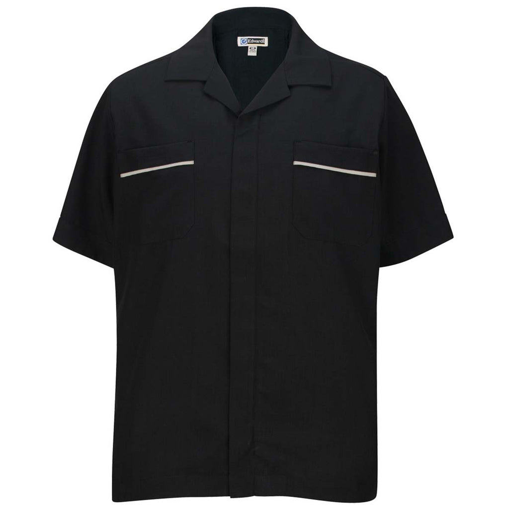 Add a custom embroidery to the Edwards Men's Black Pinnacle Service Shirt to create a look unique to your company or organization. Made of 100% polyester the contemporary styling of this comfortable to wear, easily washable shirt is unmatched. Available in six color combinations this service shirt is ideal as part of employee apparel when paired with slacks or as corporate uniforms for large organizations. The hidden placket with zipper down front with snap closure ensures a tidy appearance on the short sleeve shirt with contrasting piping on the pockets.Highlights