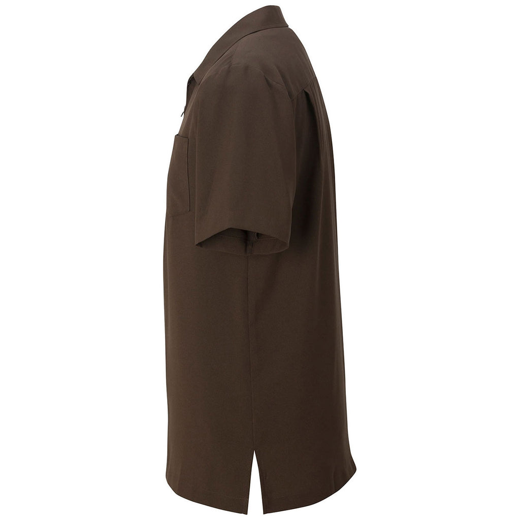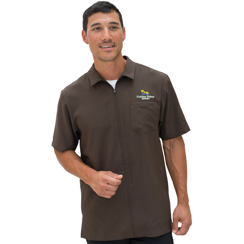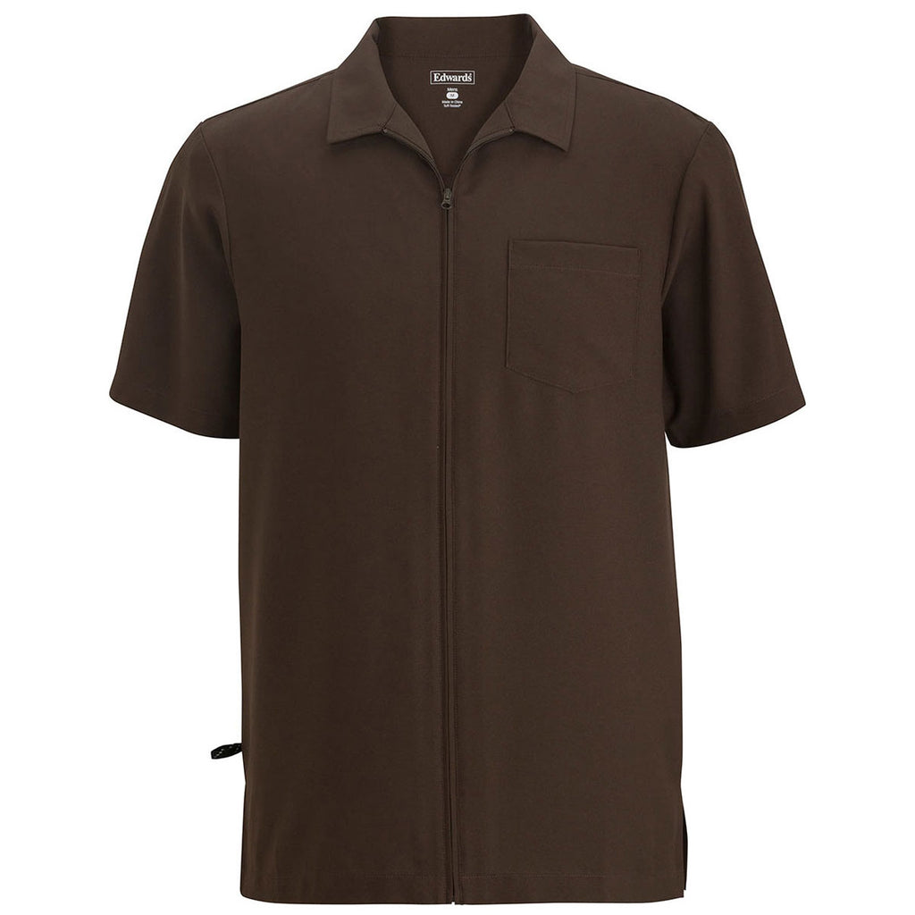 Edwards Men's Java Essential Soft-Stretch Service Shirt in java with a custom embroidery is the gift or uniform you have been searching for. The 100% soft-stretch polyester is lightweight with a traditional fit. Made with stretch, this shirt allows for plenty of movement whether cooking a five-star meal or greeting new clients at the front desk. The full front zipper makes it easy to layer this shirt over a tank or tee while still looking extremely professional. Add a company logo to the Scotchguard protected fabric that has soil release to give as employee gifts or something special to a friend.Highlights