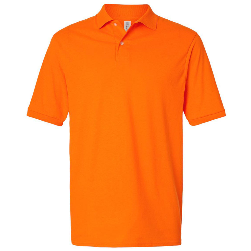 Choose embroidery for the Jerzees Men's Safety Orange Dri-Power Polo made of sustainably sourced cotton. This classic polo is comfortable for all-day wear weather at work, hitting the driving range, or going out to drinks with friends at the club. Your custom design will pop on the preshrunk fabric that is created for long-lasting wear.Highlights