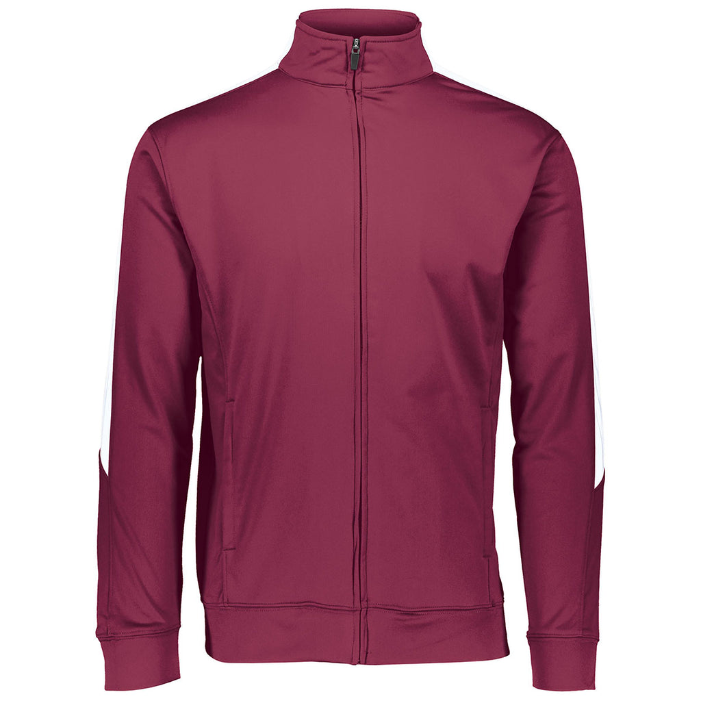 Augusta Sportswear Men's Maroon/White Medalist Jacket 2.0 will carry your custom logo like a winner. The high collar full-zip has a partial stripe down each sleeve for flair. Add a corporate logo to give as gifts or incentives to get or stay healthy as a company. Great for workouts, daily wear, or just to stay warm on a chilly day. Place an order today.Highlights