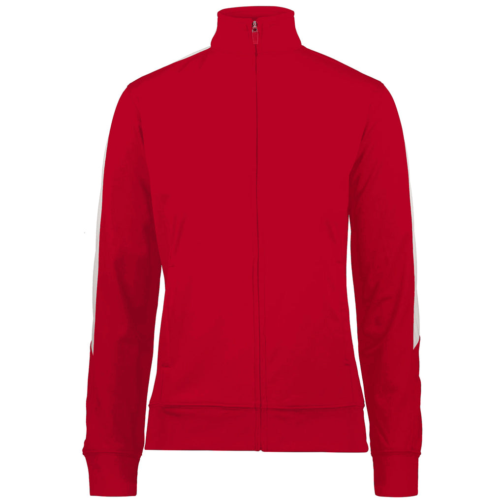 Stay warm in a custom embroidered Augusta Women's Red/White Medalist Jacket 2.0 with full front zippered design. The heavyweight polyester matte brushed tricot with contrast color inserts is a comfortable choice whether hiking in the woods or commuting to the office each morning. Add a company logo to the fitted jacket with set-in sleeves and self-fabric cuffs with open bottom as an employee gift or as part of uniforms. Try a custom logo to give as gifts, create a look for your brand, or just add to your logoed apparel options. No matter how you choose to wear it, place an order today.