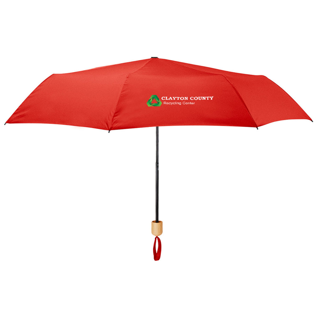 Hit Red 41" Arc Umbrella with 100% RPET Canopy & Bamboo Handle