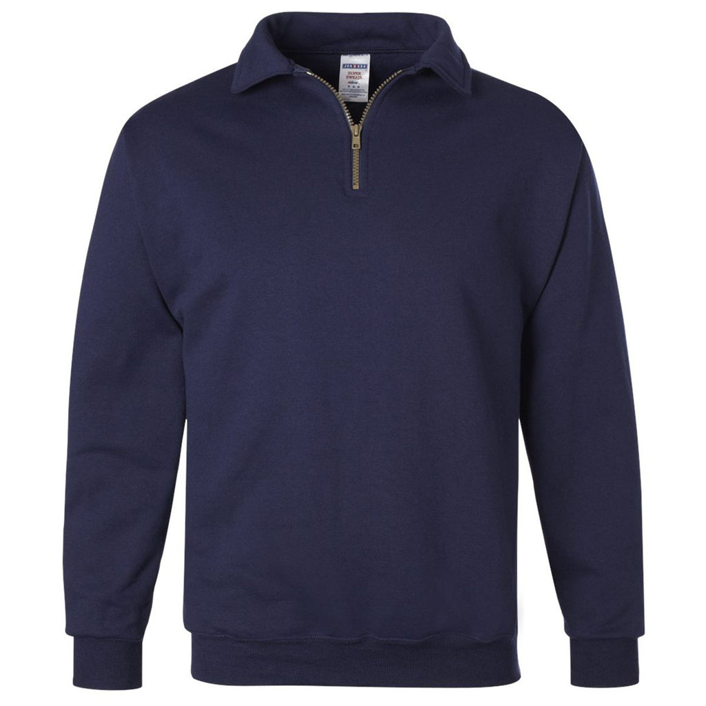 The custom logo Jerzees Men's J. Navy Super Sweats NuBlend Quarter-Zip Cadet Collar Sweatshirt offers eye-catching style and comfort in a promotional product. With your company name added to the sweatshirt you can advertise your brand with ease. This makes an excellent event giveaway gift option.Highlights