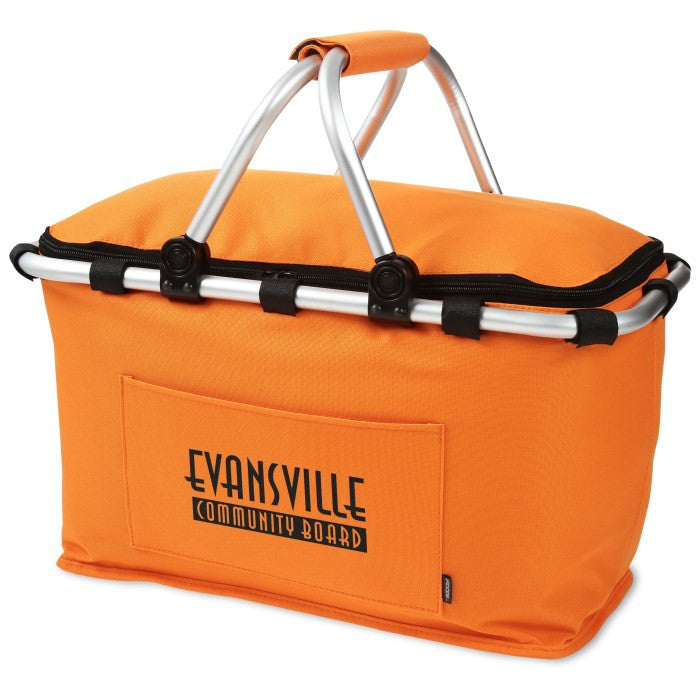 Forget the image of a flimsy picnic basket that barely makes it through its first picnic. The Koozie Orange Picnic Basket changes the way you look at picnic basket durability. Rugged materials prevent strong impacts from leaving dents and scratches. The sturdy aluminum handle gives you plenty of stability to carry heavy loads to and from your car. Collapsible for convenient storage, the Koozie Picnic Basket includes a PEVA liner that keeps cold food and beverages cold. Attach a custom logo that customer prospects immediate recognize as your company emblem. Logo'd corporate accessories act as effective and affordable advertisements for your brand.