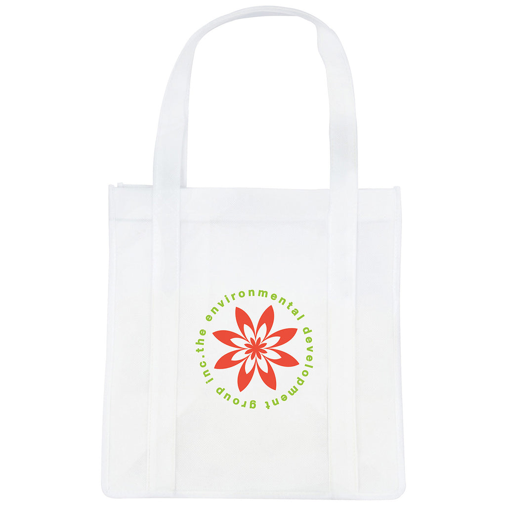 Shop with ease using a custom Good Value White Grocery Tote. Whether you own a store, sell a specific product, or just like to show off your style, this tote is perfect for staying green and keeping your purchases organized. The reusable tote is ideal for quick trips to the market after work or school. Easily resell to encourage use in your store.