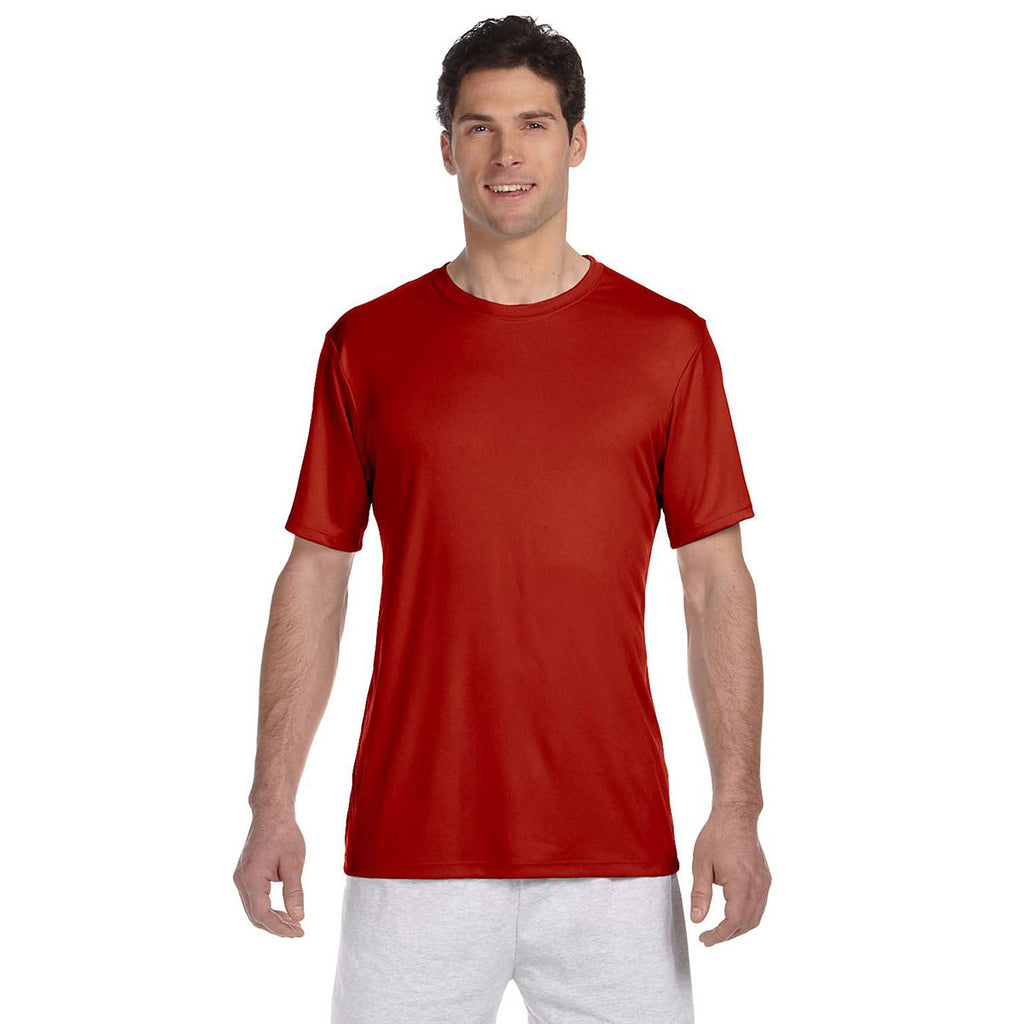 A perfect t-shirt to carry your screen print can be found in the Hanes Men's Deep Red Cool DRI with FreshIQ T-Shirt. Made of 100% polyester interlock this tee dries fast and wicks away moisture so your screen print will always look its best. The 50+ UPF rating offers excellent UV protection for those golf events or outdoor trade shows. Add a custom logo to let people know who you support or which company you work for at recruiting events. Available in a range of classic and unique colors, this tee will be an instant favorite among wearers. Place your order right away.Highlights