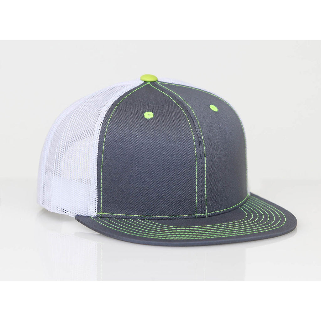 Pacific Headwear Graphite/White/Neon Yellow D-Series Snapback Trucker Mesh Cap