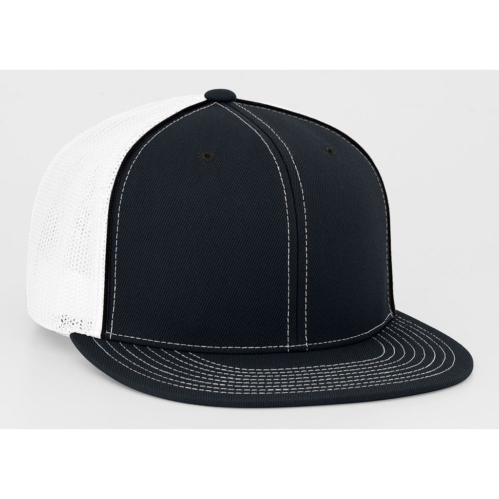 The flat bill of the logoed Pacific Headwear Black/White D-Series Fitted Trucker Mesh Cap remains firm for years to come. As one of the new cap styles, the flat bill makes a bold fashion statement and it protects your eyes from the sun. The major league structured profile will have your professional peers envious at the next corporate softball game. By adding a custom logo, you create interest in your company at outdoor civic events. M3 performance fabric front panels resist rips and tears, as well as endure frequent use. Enjoy air circulation produced by the design of the stretchable spandex Trucker mesh back.Highlights