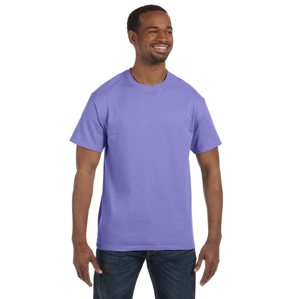 As the ideal gift for participants at golf events and 5k races, the logoed Gildan Men's Violet 5.3 oz. T-Shirt features a stylish rib at the neckline to achieve company fashion greatness. The classic fit makes the t-shirt a welcome addition for any professional that wants apparel flexibility at work and play. Super soft 100% preshrunk cotton delivers supreme comfort to keep you feeling fresh all day long. Double needle stitching prevents rips and tears to give you go to short sleeve shirts for years to come. Screen print a custom logo on the t-shirt to reach more potential customers at outdoor civic events.Corresponding Women's Style: Gildan Women's Violet 5.3 oz. T-Shirt