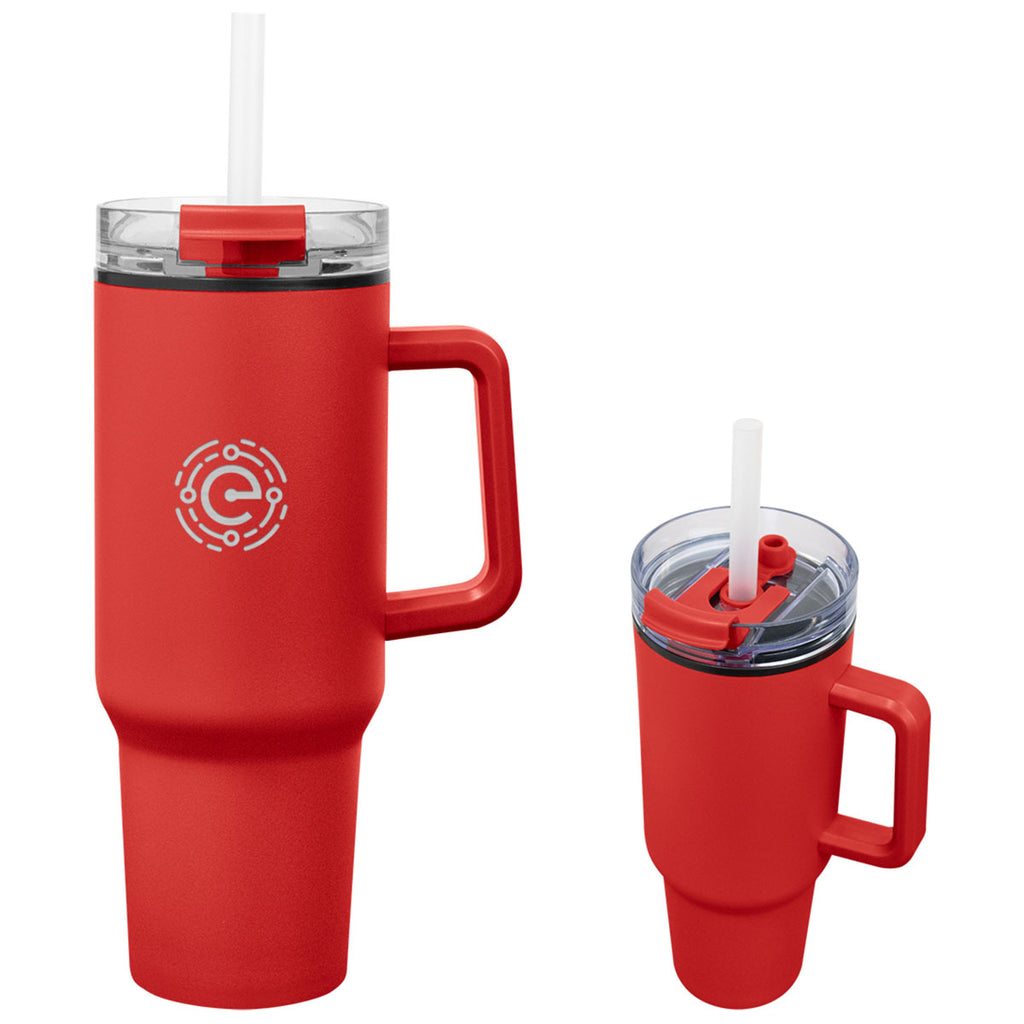The Hit Red 40 Oz. Quest Stainless Steel Tumbler with a custom logo is a fun and simple gift idea for friends, family, or new customers. Available in multiple color options, the stainless steel tumbler has an inner liner to keep drinks at the right temperature. A screw-on lid has a straw hole and includes a straw for convenience.