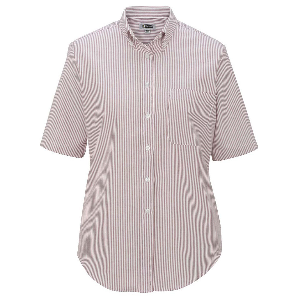 Edwards Women's Burgundy Stripe Short Sleeve Oxford Shirt