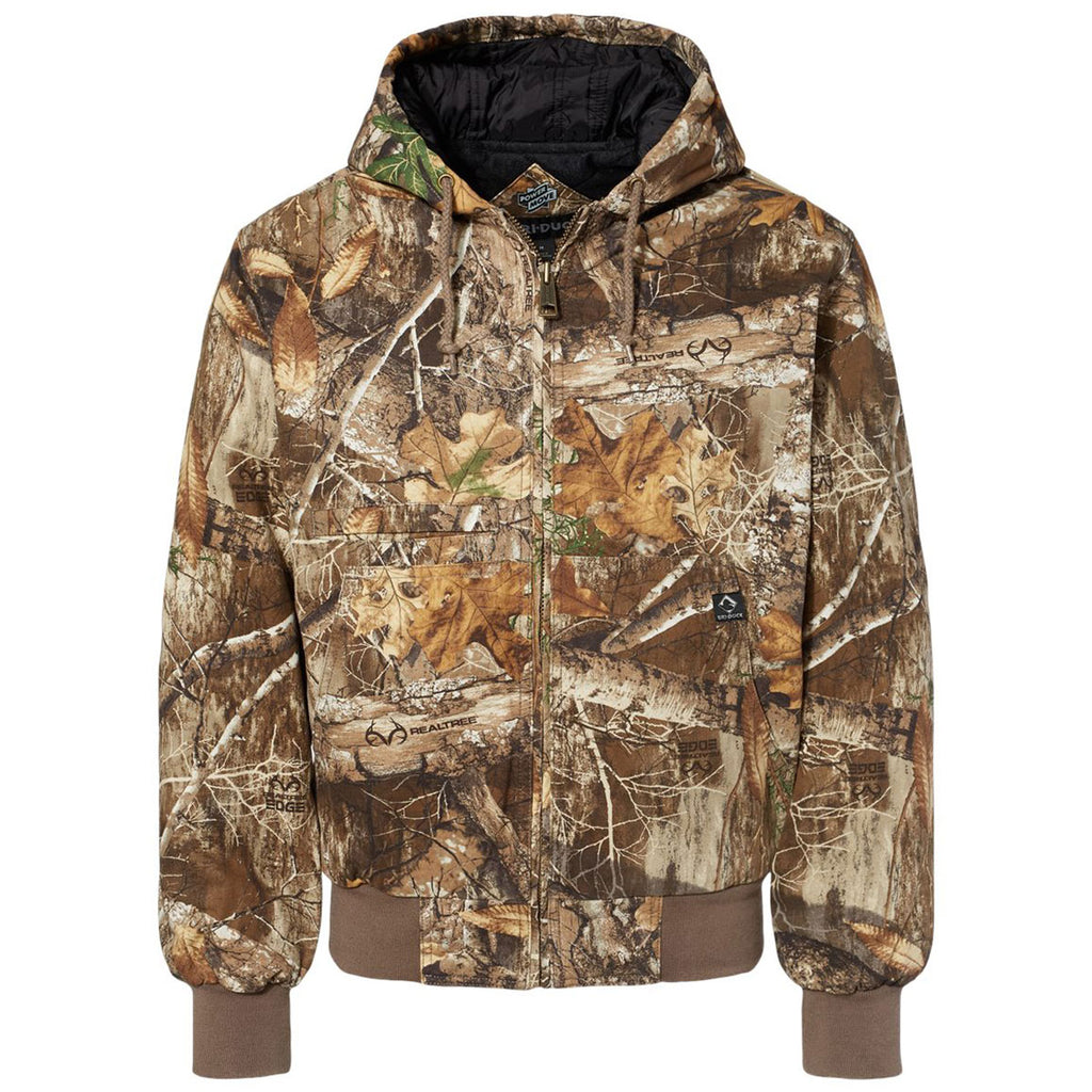 Choose a custom design for the Dri Duck Men's Realtree Edge Laramie Power Move Jacket to create employee apparel that commands respect. This cotton Canyon Cloth canvas is heavier for outdoor wear with a brushed tricot upper body panel and quilted nylon lower body panel with polyfill. Flex Action means you can keep working while wearing without restricting mobility. A drawstring hood keeps you further protected whether hiking, working the high lines, or doing general outdoor tasks.