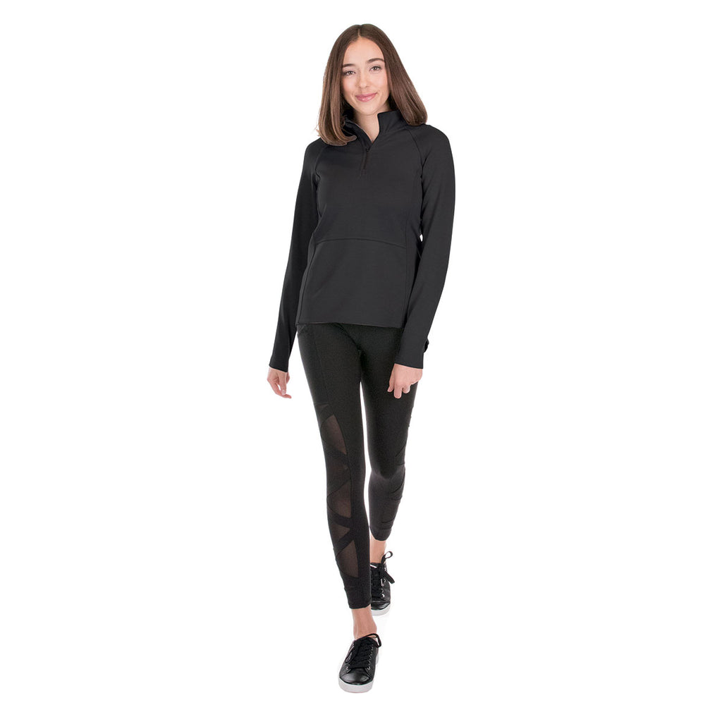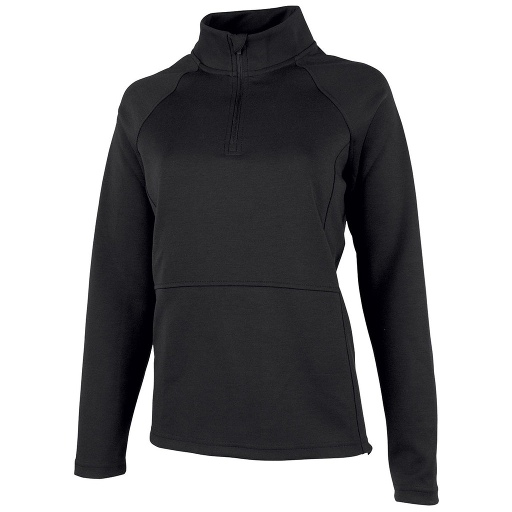 Charles River Women's Black Seaport Quarter Zip with custom embroidery will turn heads whether headed to the gym or screening people at the next recruiting event. This gorgeous modern mock neck 1/4 zip offers raglan sleeves and a drop tail peplum wrap back with a feminine silhouette. Perfect for trade shows or even corporate apparel when needing to be comfortable, but still working. The moisture wicking fabric will keep you warm and dry no matter the activity. Choose your company logo that will look best on this pullover and offer these as gifts or prizes for nearly any event. Place an order today.Corresponding Men's Style:Charles River Men's Black Seaport Quarter Zip