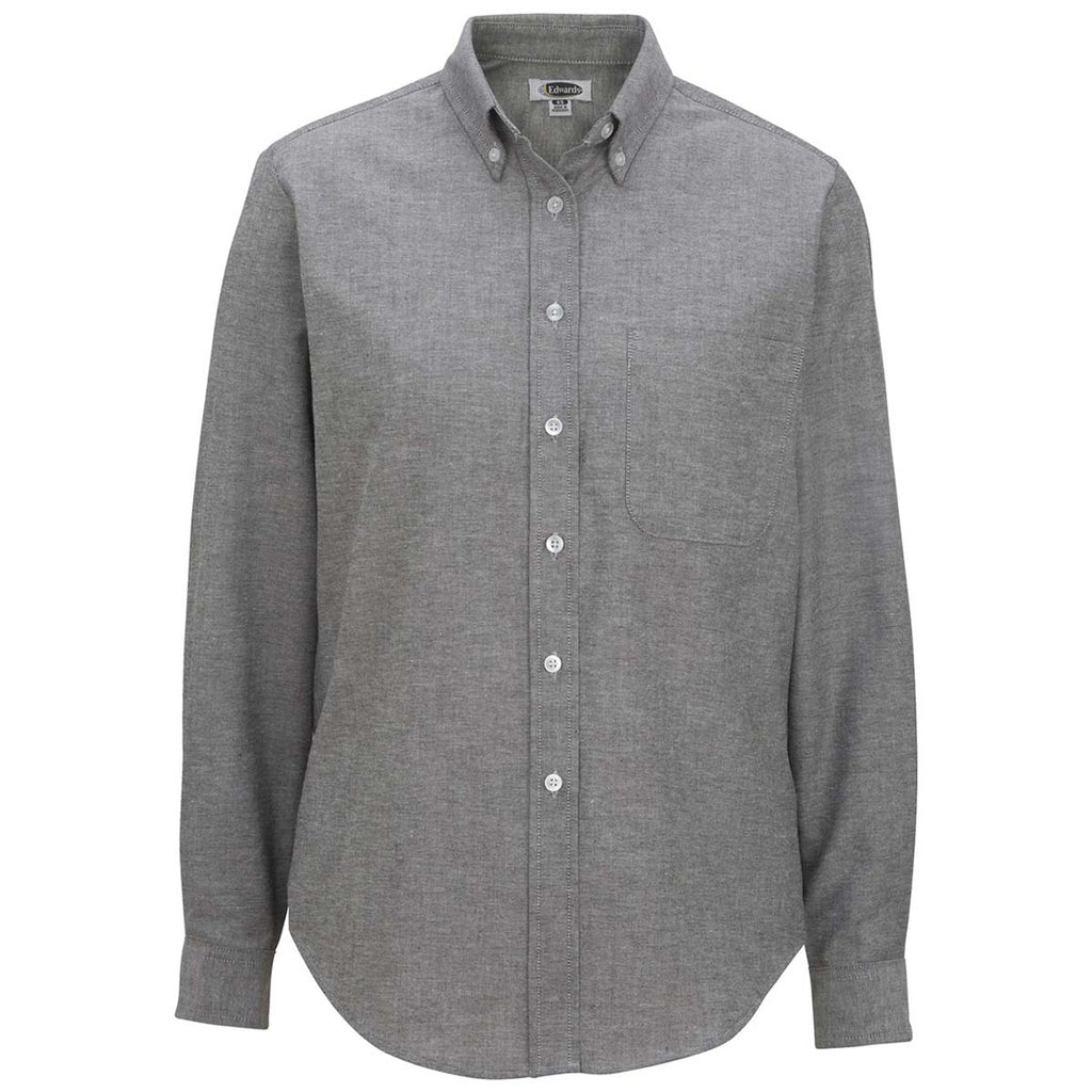 Edwards Women's Grey/Black Long Sleeve Oxford Shirt