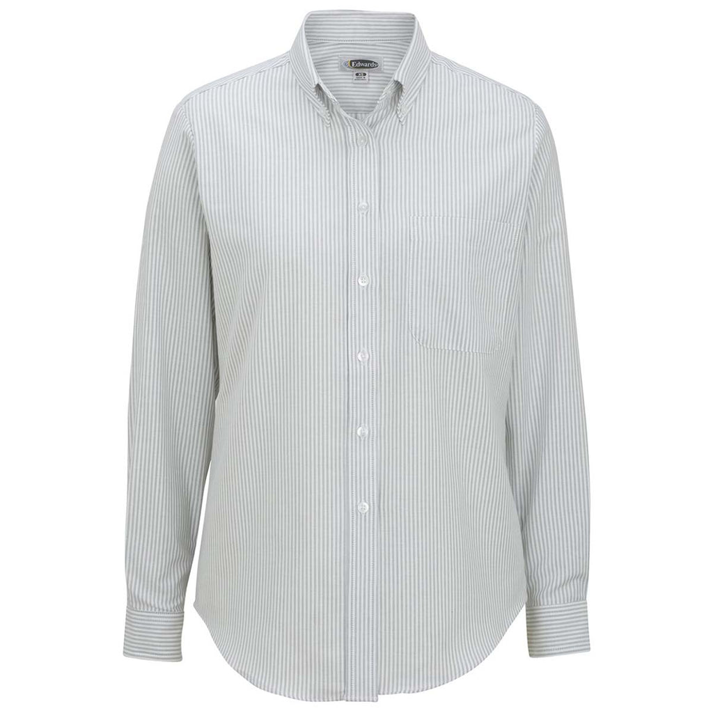 Edwards Women's Grey Stripe Long Sleeve Oxford Shirt